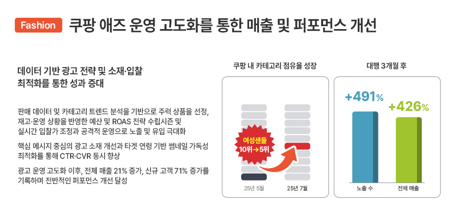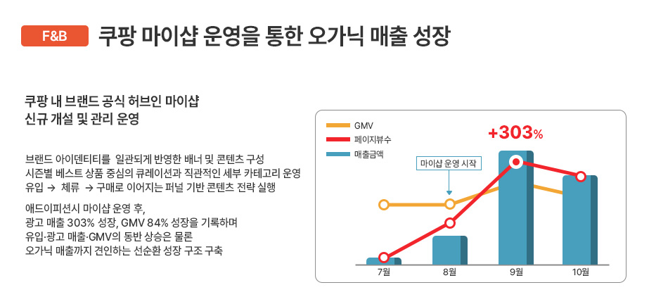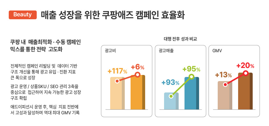 브랜드별 쿠팡 전체 GMV와 순익 성장까지 함께 이뤄내며 성공사례를 만들고 있습니다.